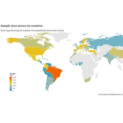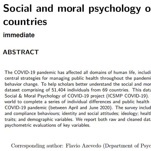 A paper with the full dataset (51,404 participants from 69 countries) from our international study of the social & morality psychology of COVID-19 is now available! And better yet, we created a tool for you to visually interact with the data. You can check out the paper here and the tool here: